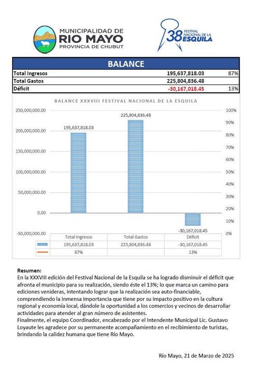 El Ejecutivo Sr. Gustavo Loyaute presentó en Sala de Conferencias, junto a integrantes del equipo coordinador y de la Secretaria de Hacienda, el balance general de la 38 Edición del Festival Nacional de la Esquila que se realizó durante los dias 17-18 y 19 de enero. El mismo tuvo un ingreso total en $195,637,818.03 que […]